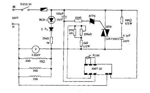 下圖為BGX-2080型防爆真空干燥箱的電路原理圖如圖,箱體的溫度控制采用了智能電腦溫控,溫度信號的采集用鉑電阻,經溫度控制器的放大與設定值進行比較得到PID控制信號,控制信號將控制可控硅的通斷,可控硅再控制加熱器加熱狀態(tài),達到自動控溫的目的。
